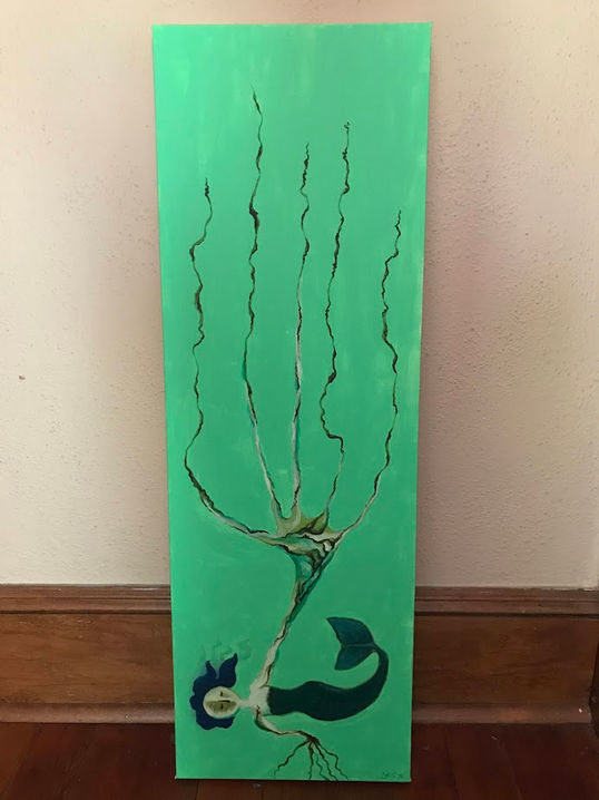 I was diagnosed with breast cancer in 2019 and had to have surgery and undergo chemotherapy and radiation therapy. I made this painting in response to that.